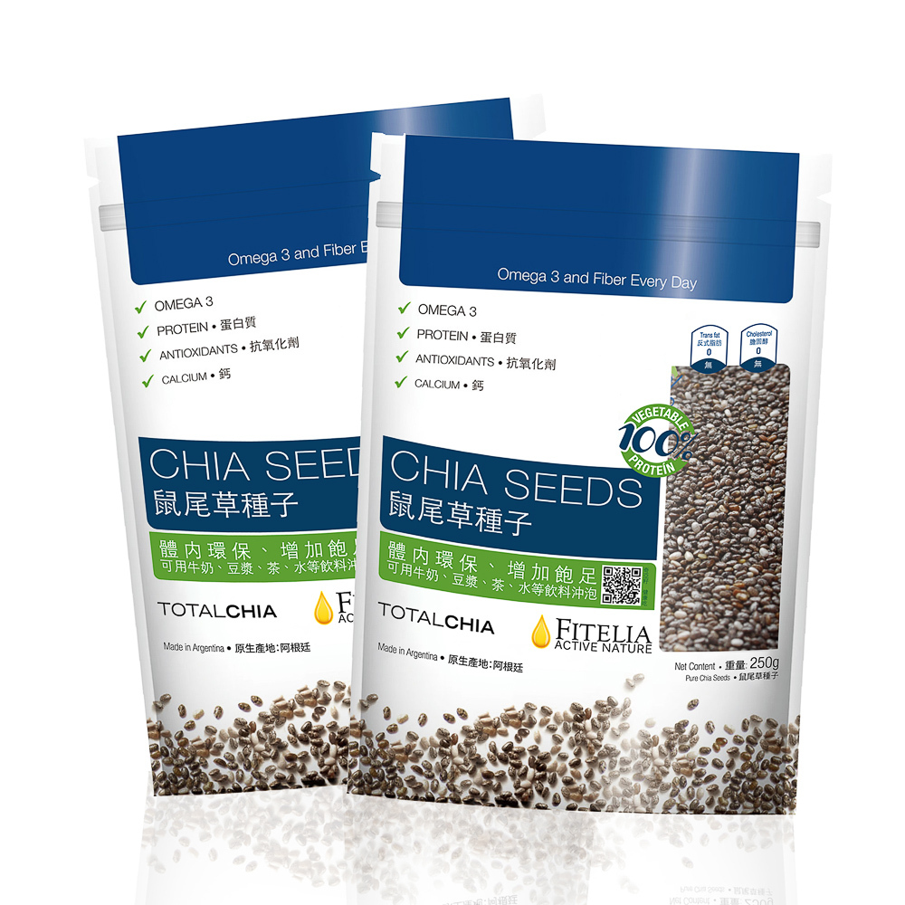 ⦁ 每日1大湯匙約10-15克,以200cc飲用水加入1大湯匙10-15公克奇亞籽沖泡,均勻靜置5分鐘,可添加牛奶、優格或果汁飲用,或加入早餐飲品或粥品中一起食用,以增加每日OMEGA-3、鈣、膳食纖維、蛋白質的攝取量。